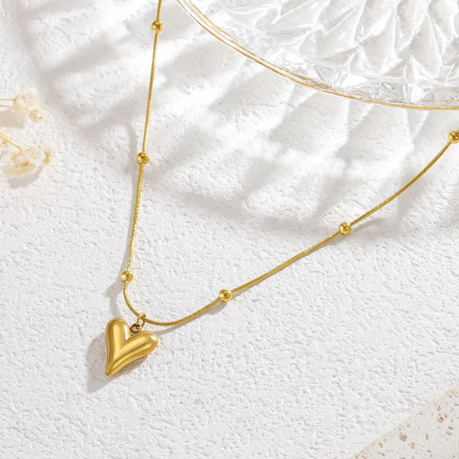 Minimalist heart shaped beaded necklace