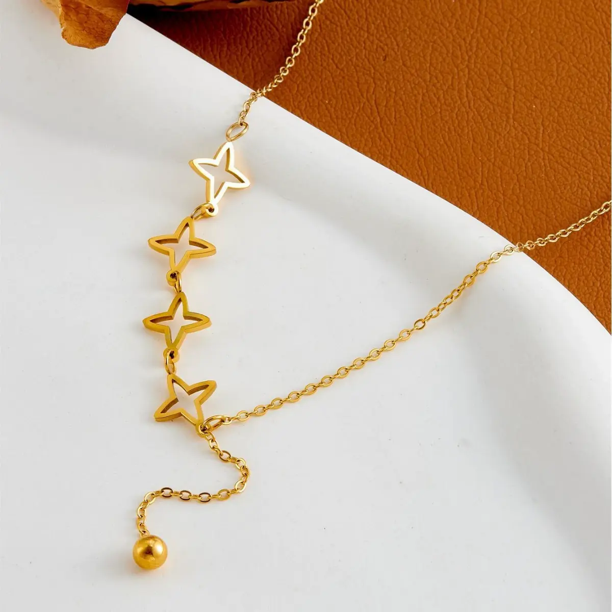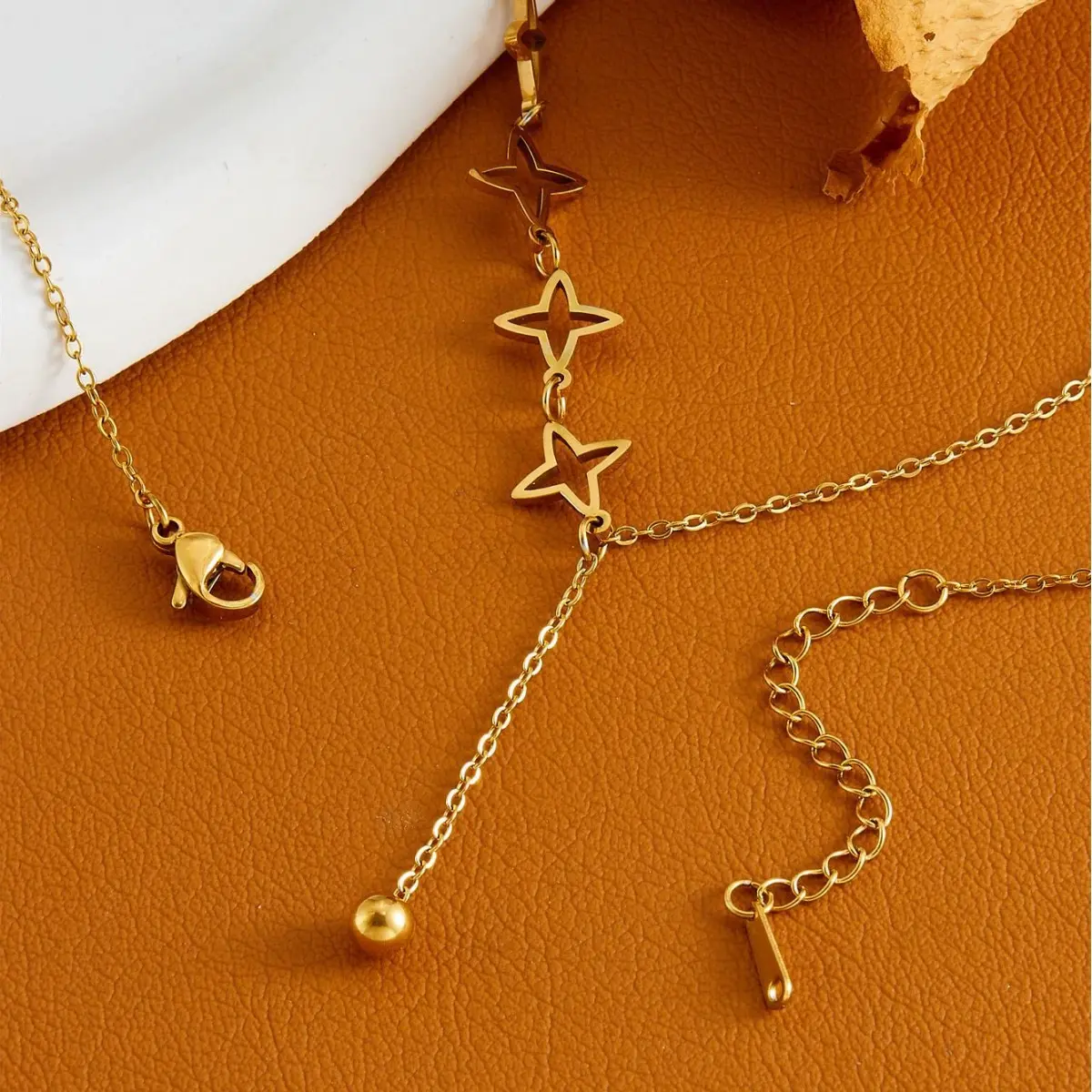 Stainless Steel Four leaf tassel color guaranteed necklace