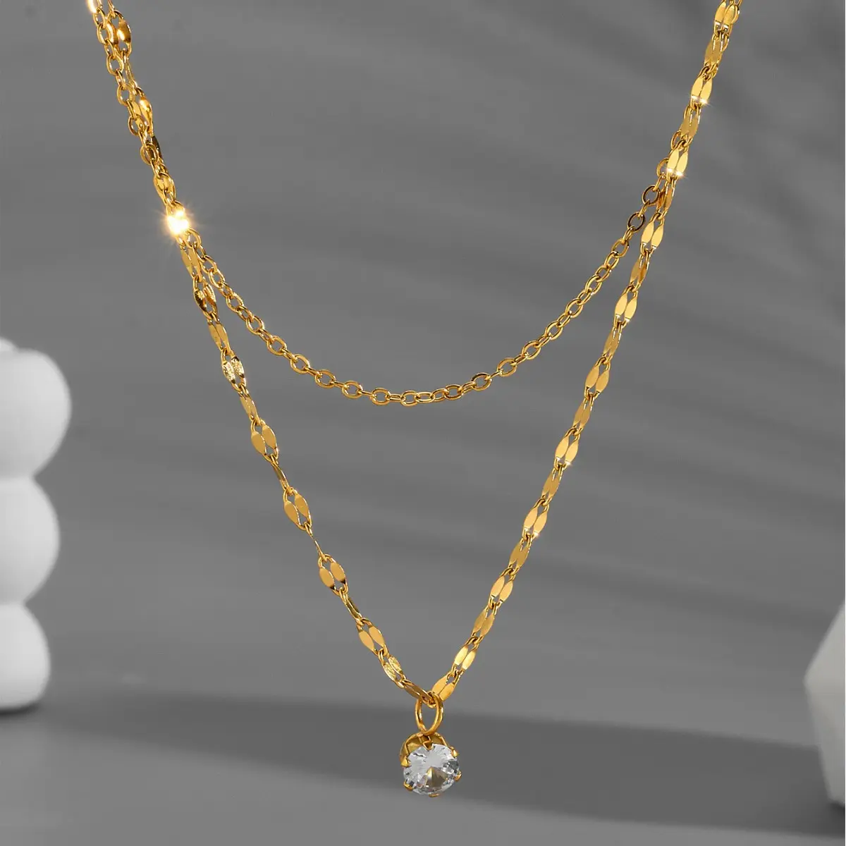 Double chain double ring necklace