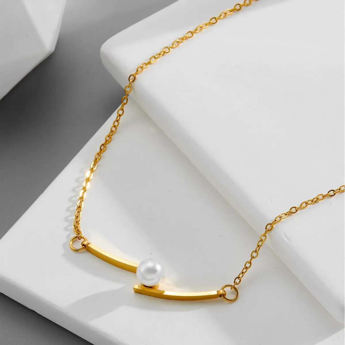 O shaped with golden bean pearl necklace